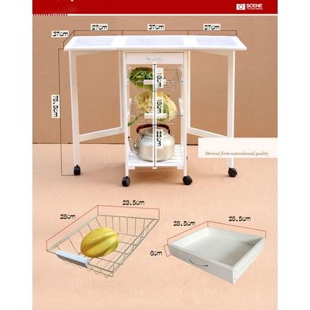 Product titlezimtown drop leaf kitchen island trolley cart with storage drawers basket,folding rolling protable.