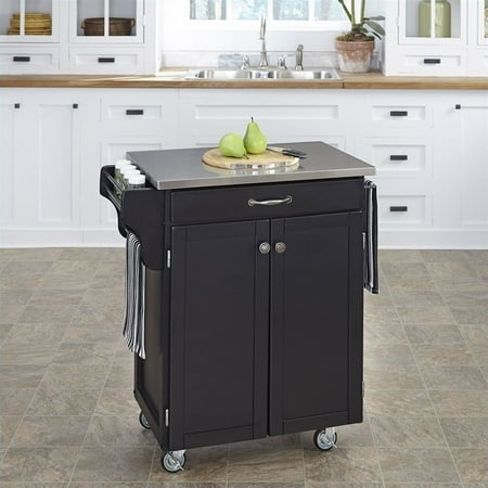 Stunning Black Kitchen Cart With Stainless Steel Top Collections. Liberty kitchen cart, stainless steel top, black finish. Utility drawer and 2 cabinet doors with adjustable shelf inside. Home styles cuisine kitchen cart in a blackhome styles cuisine kitchen cart in a black finish with a salt and pepper granite top features solid wood. Handy spice rack, towel bar;